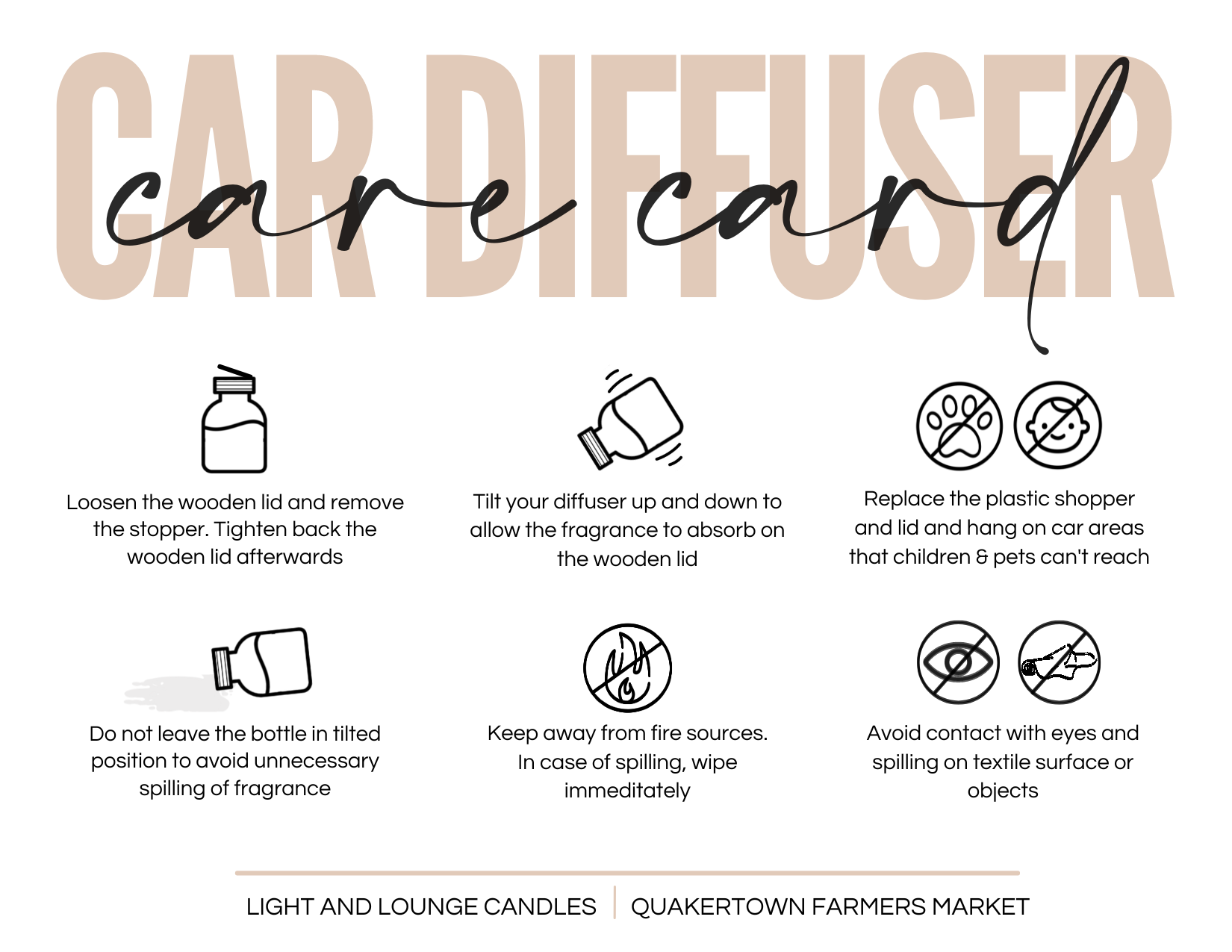 A hanging car diffuser is a device designed to diffuse pleasant scents within a car. It typically consists of a small container that holds a scented fragrance. The diffuser is often attached to the rearview mirror or other parts of the car's interior using a string. Car diffusers lasts up to 60 days. |