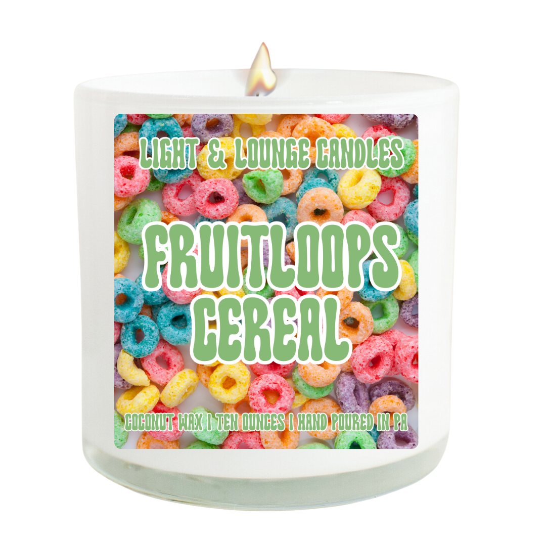 "Fill your home with the delicious scent of fruity loops with our Fruit Loops Cereal Candle. Bring the nostalgia of your childhood breakfast to any room. Guaranteed to make your space smell like a bowl of crunchy, colorful goodness. No spoon required!"